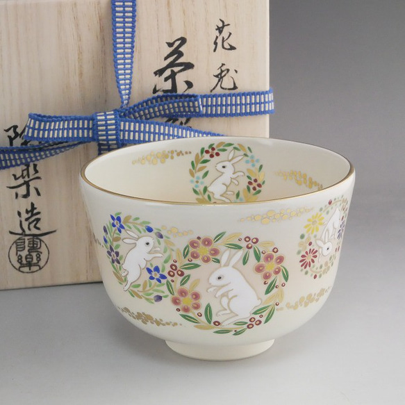 京焼清水焼の窯元 森里陶楽の抹茶碗 花兎です。花兎は名物裂の一種です。花