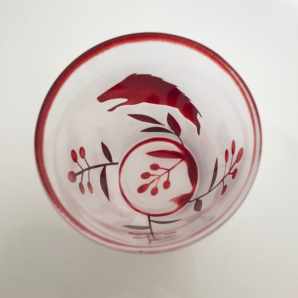 【スクエア木箱入り】 ★単品ご購入よりお得なセットになります。 受注制作のため、お時間いただく旨ご了承ください。 江戸硝子(made in Tokyo 東京都伝統工芸品指定)の手作りおちょこを用いて、人気のいのしかちょう:「蝶に牡丹」「萩にいのしし」「紅葉に鹿」の花札模様セットでお送りします。 ボタンの花びらは、一枚一枚丁寧に彫り重ねた特殊な技法で制作しています。 鹿やいのしし、草木のひとつひとつにぼかしをいれて柔らかな立体感を出して仕上げています。色味をすべて落とさず、ごくわずかに残してグラデーションを表現しているのが特徴です。 上からながめても楽しんでいただけるように底にも模様をほりこんでいます。 高度なサンドブラスト技法による工芸グラスをお楽しみください。 ※手作り品のため、モチーフが同じでも色味の濃さや模様の配置、彫り込み具合削り具合などが多少異なることをご了承の上お買い求めください。 ※素材自体も手作りのため、多少の色むらやスジ、泡などがある場合がございますが予めご了承ください。 ・・・・・・・・・・ 【製法について】 こちらの作品には「被せ硝子」という制作の難しい特殊なガラスをつかっています。 「切子」に使われているものと同じ素材です。 外に「色ガラス」と内側に「透明ガラス」の二層のガラスを薄く型にいれて吹きあげて制作されています。 (特に、江戸時代より続く伝統工法に則り、今なお都内で制作を行っていると認定された窯元のガラスは「江戸硝子」と呼ばれ大変人気があり、 こちらの作品はその江戸硝子を使用して製作したものです。) ペイントや印刷のものと違い、表層の色ガラスをサンドブラストで削って模様を表現したものです。 ガラスそのものの色味なので、色あせたり、剥げて消えたりする事なく安心して永くお楽しみいただけるのが特徴です。 すりガラスのマットな質感、ぼかしを多用し、細かく丁寧に彫りだしたワザありのサンドブラストをお手元でお楽しみください。 磨きは薬品を使わずに手磨きで1つ1つ丁寧に仕上げています。 ・贈り物の場合は、男性向け、女性向け、誕生日用、結婚祝い、敬老の日用など、 ご用途をメッセージをご記入ください。 |