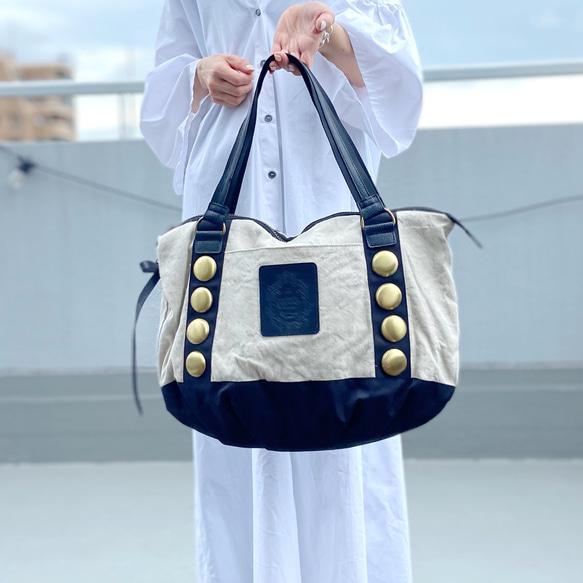 大きなボタン金具がインパクトあるバッグです。 本物のミリタリーリメイクは素材に味があり独特のカッコイイ雰囲気を出してくれます。 パンツスタイルでカッコよく、またはスカートスタイルに合わせると甘辛ミックスなスタイルに☆ 軽く柔らかいのでかさばらずに持ちやすいです。 普段使いから、1泊2日の旅行にも使えます。 ポケットも沢山付いていて、見た目だけでなく機能面もバッチリです。 フランス軍のマットレスカバーをリメイクしていてナチュラルでかっこよく手触りも良いです。 別売りのショルダーパーツをつけると、斜め掛けもできます。 ショルダーパーツはこちらです★ 大人かっこいいデザインのボストンバッグをお探しの方はぜひ・・・ 素材:本体 コットンリネン (フランス軍マットレスカバーリメイク) 付属:スプリットレザー サイズ:高さ32㎝ 幅38㎝ マチ9㎝ ***カラーバリエーション*** ブラック ドイツ軍迷彩 ハンガリー軍迷彩 ポーランド軍カーキ ***サイズ・型違いもあります*** <リュック> イタリア軍迷彩 <ファスナートートLサイズ ブラック> <ファスナートートSサイズ> ポーランド軍 カーキ パラフィン加工 ダークグレー パラフィン加工生地 ブラック ドイツ軍迷彩 イタリア軍迷彩 ハンガリー軍迷彩 フランス軍リネン ***ギフトラッピング対応商品*** こちらの商品はラッピング(有料)が可能です。 ギフトラッピングの際はリボンカラーが2色からお選びいただけます。 詳しくはこちらのページをご覧ください☆彡 |