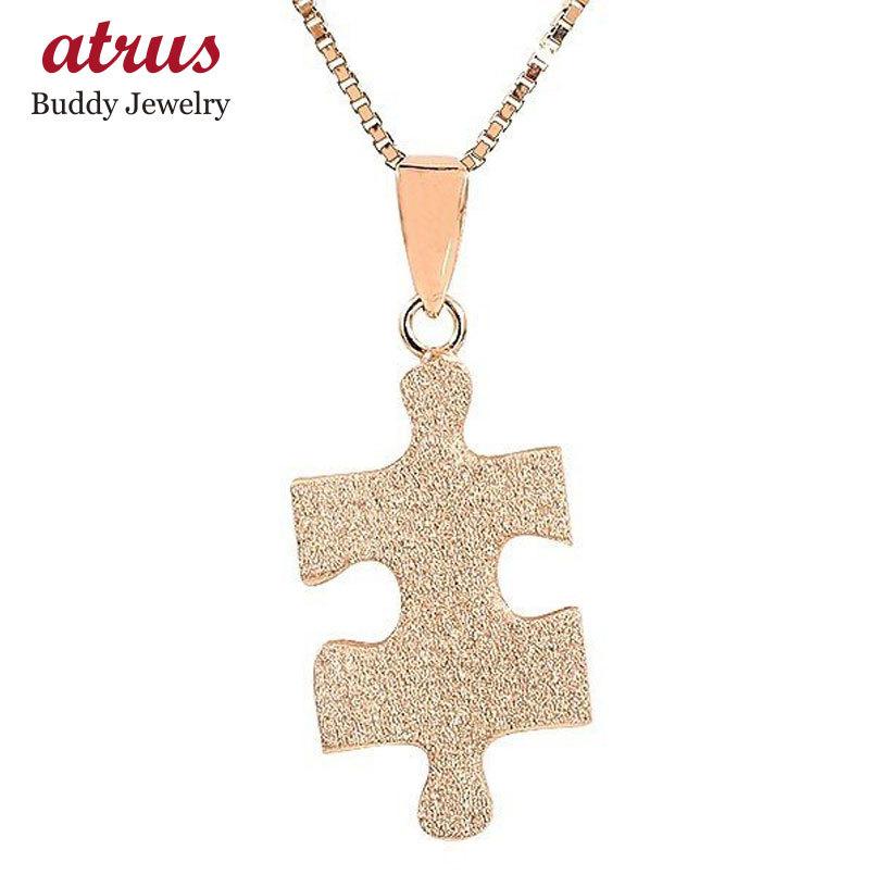 ネックレス メンズ パズル ピース ピンクゴールドk10 ペンダントトップ シンプル 10金 チェーン ホーニング加工 つや消し 送料無料 人気 セール SALE